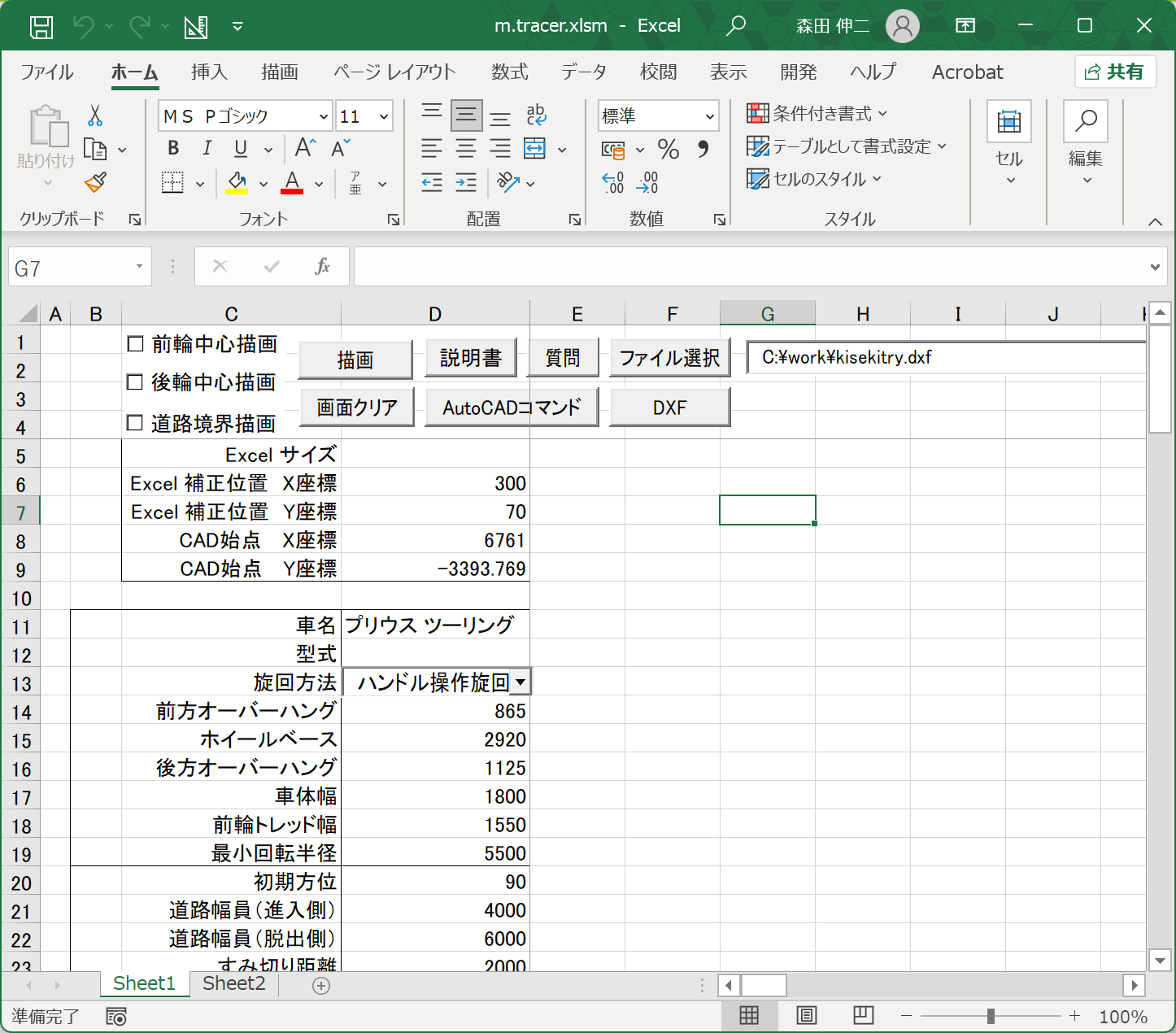また、ハンドル操作旋回を選択すれば車体が90°になるまで描きます。